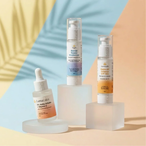 We don't just bleach the surface. Our clinical serums block pigmentation at every stage: enzyme inhibition (Alpha Arbutin), signal interruption (TXA), melanosome transfer blocking (Niacinamide), and oxidative defense (Vitamin C).